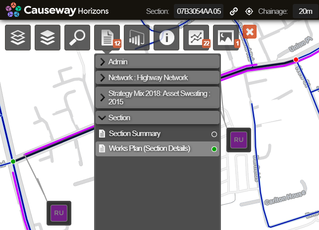 The Report displays key information about the Works Plan on that Section, including linear illustrations of the generated Treatment schemes.