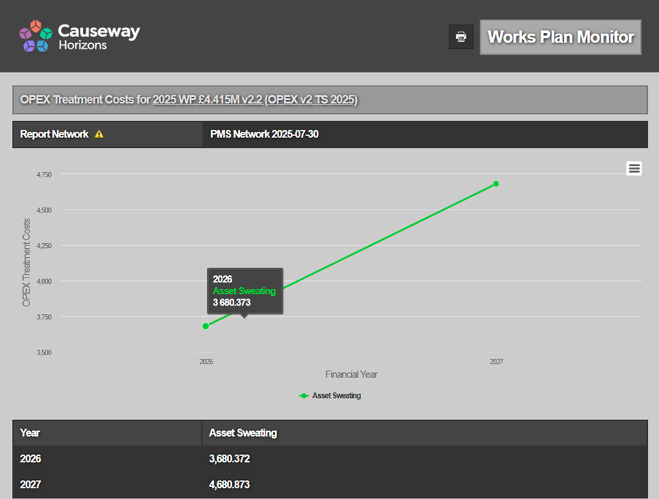 If any Opex Treatments were included in the Works Plan configuration, select the OPEX Treatment Costs monitor to see the indicative costs of potential operational expenditure.